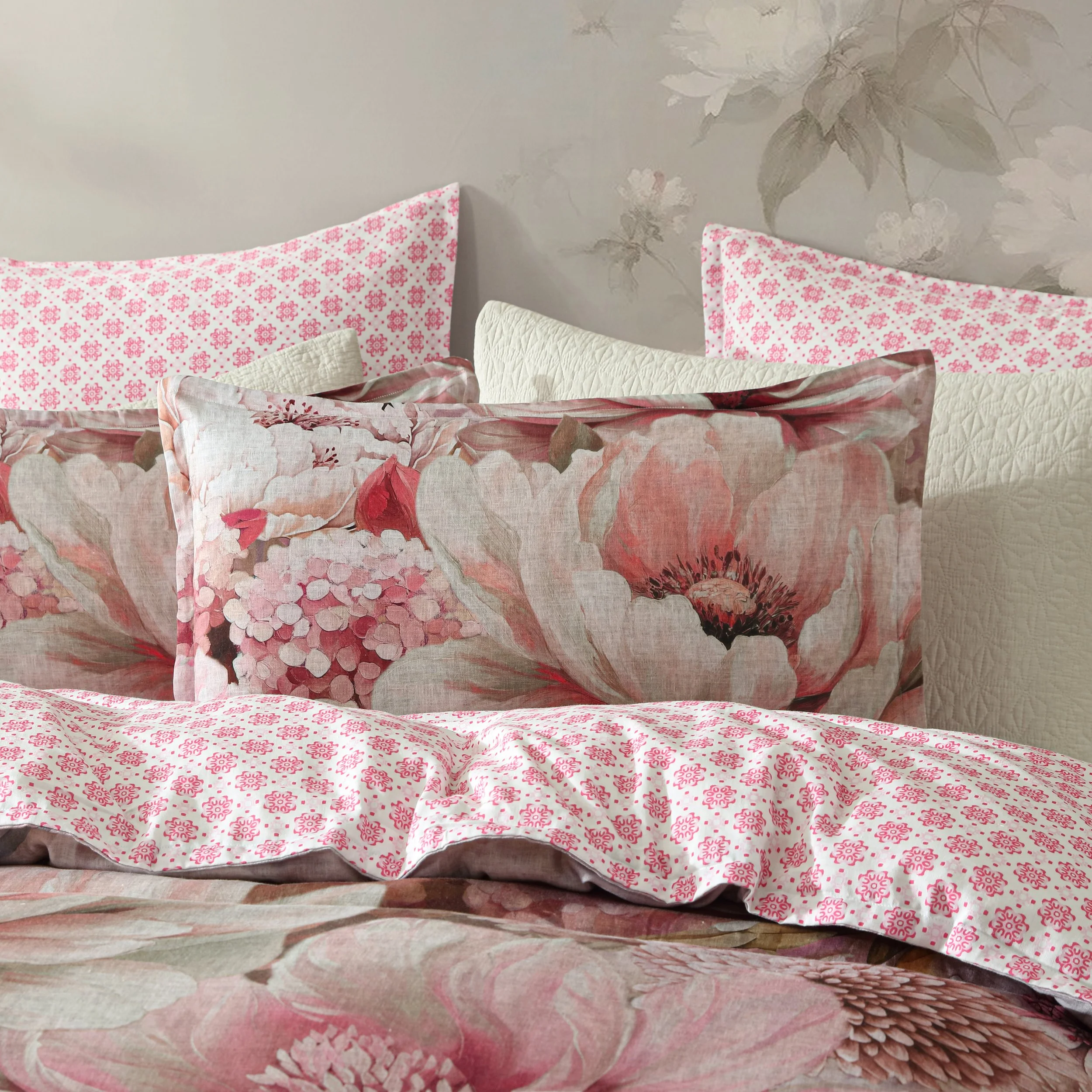 Indulge in the timeless romance of the Oleander Quilt Cover Set. Featuring oversized, painterly florals, this design celebrates the beauty of peonies, hydrangeas, and roses in soft pink hues. The hand-painted blooms create a dreamy, artistic feel, perfect for adding elegance and charm to your space. For a delicate contrast, the reverse side offers a hand-drawn floral motif in warm pink tones on a creamy base, bringing a subtle yet sophisticated touch. Whether you’re embracing classic romance or modern femininity, the Oleander Quilt Cover Set is a stunning statement of beauty and grace.