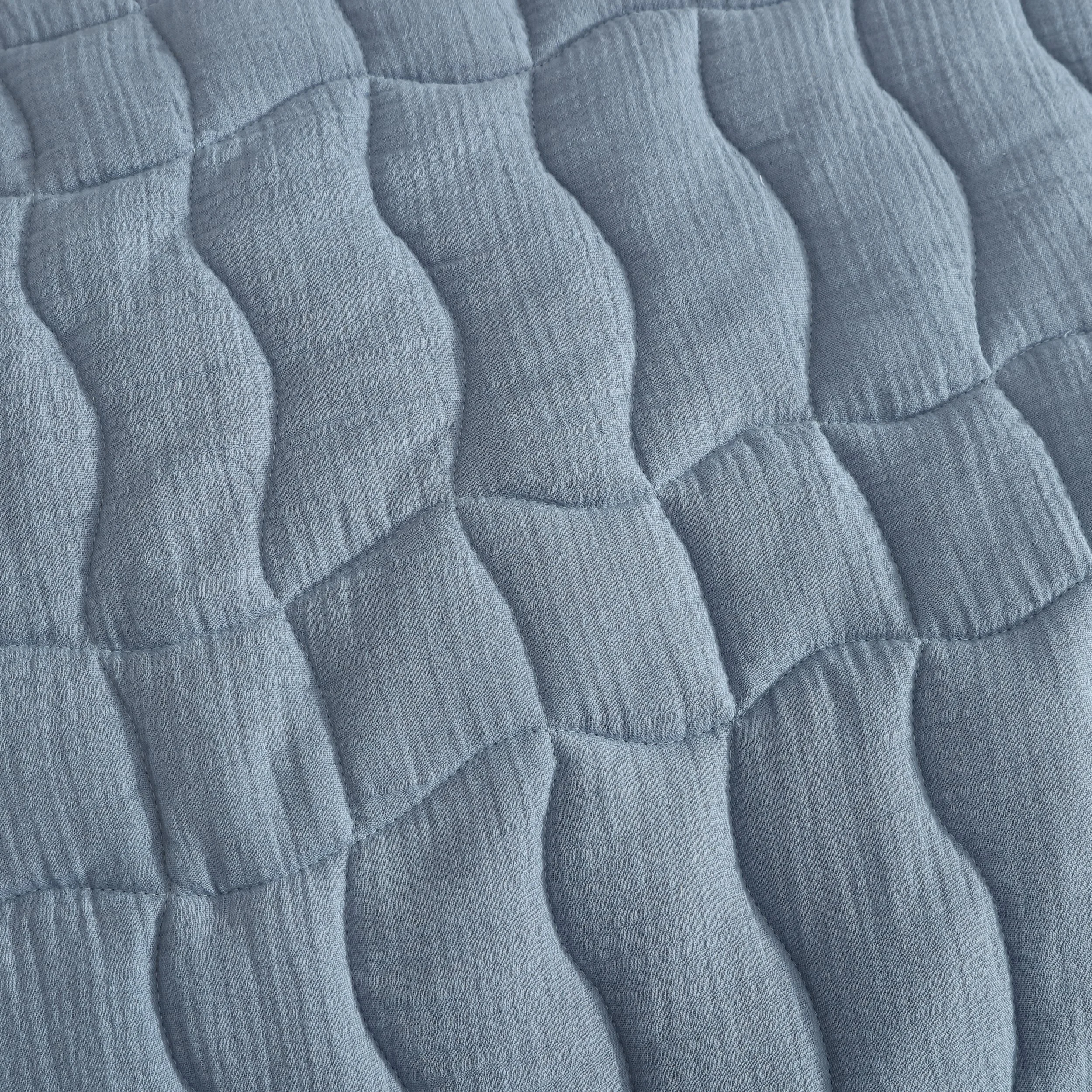 Cascade features a full coverlet set in soft, stonewashed cotton quilted gauze. The random wave-check quilting adds movement, drawing the eye across the design. The solid colour is softened by the stonewashing process, while a bound edge completes the modern, contemporary look. This piece brings both texture and style to elevate any space.
